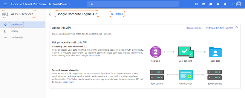 • Google Compute Engine API and