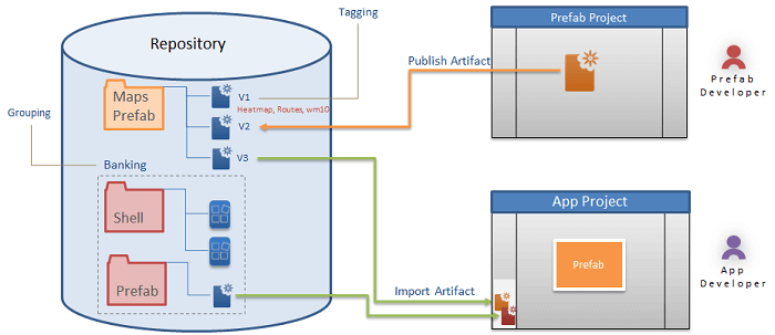 Each of the above Artifacts has a workspace to develop the Artifact and then publish it for other developers across the team to import/use them.