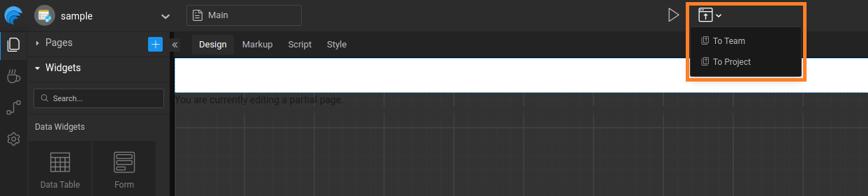 • Non-team Version: There is no Theme publish option for non-team version, the theme zip file generated needs to be imported from the Themes dialog.