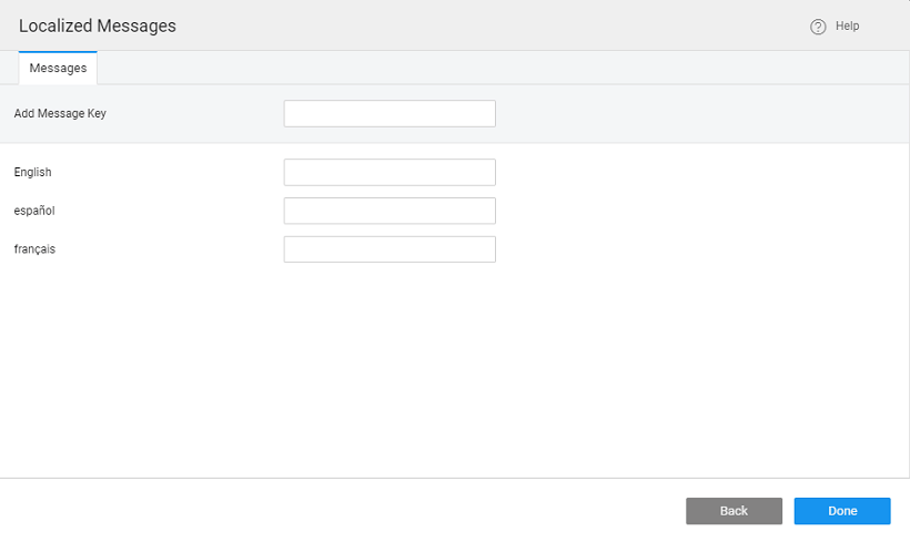 1. Enter a Message Key and enter messages for all the Languages added and click Done to save.
