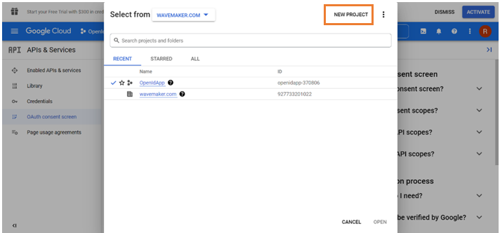 Creating New Project in Google Console