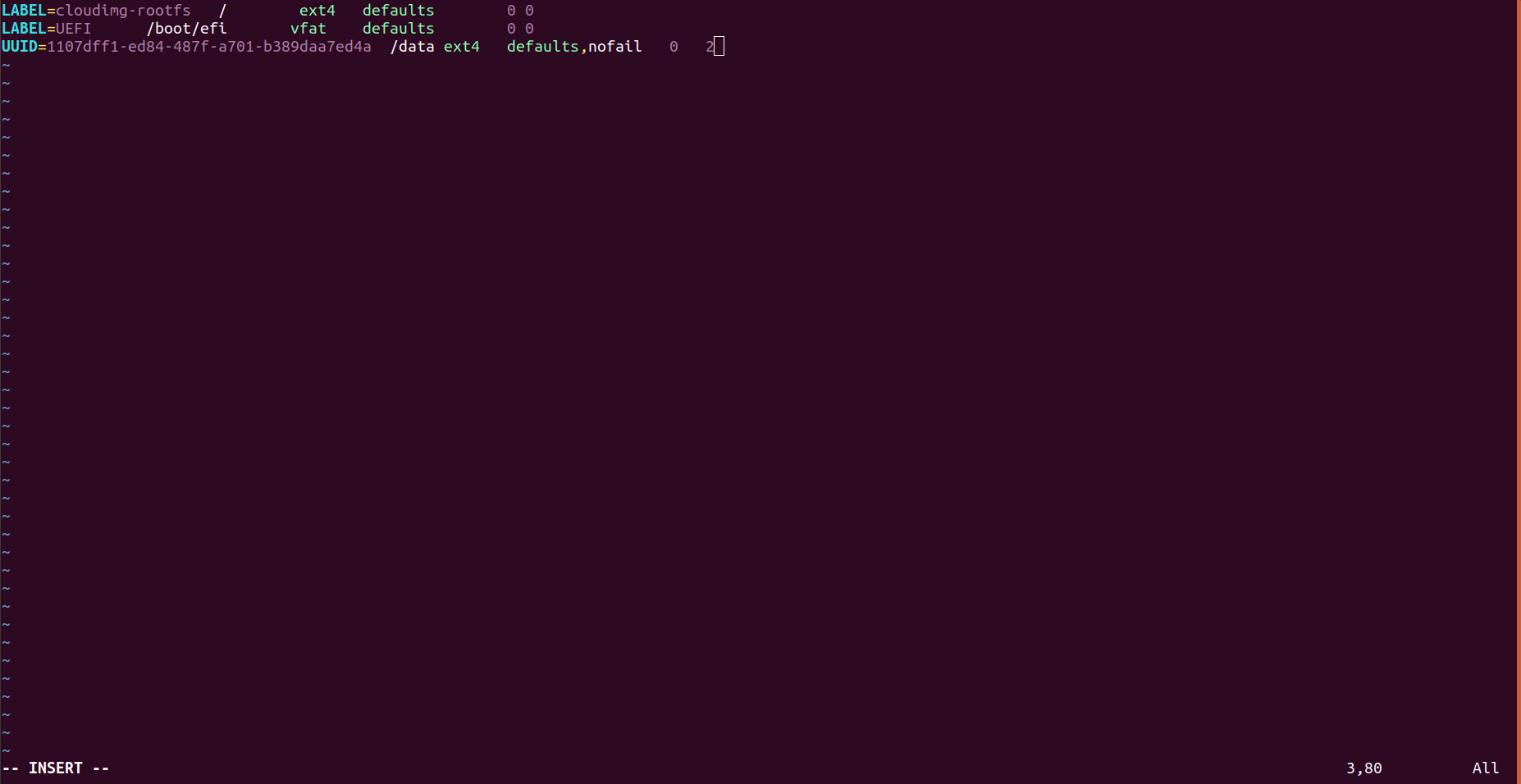 UUID=<block-device_1-UUID>    /wm-data     ext4   defaults ,nofail  0  2