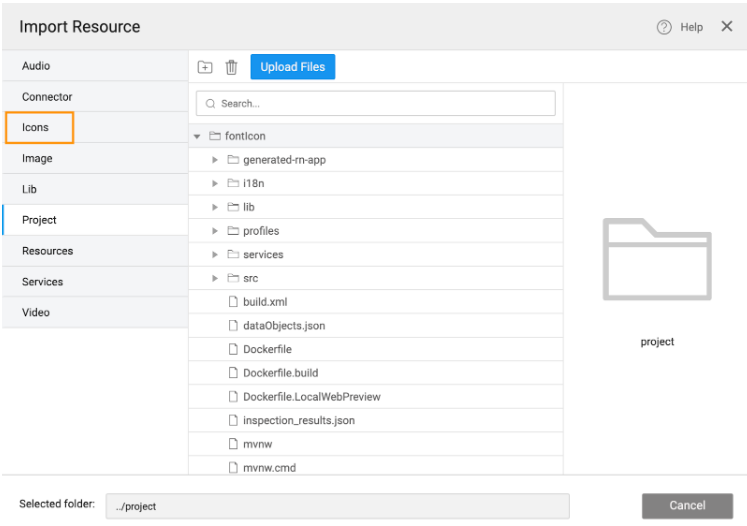1. Click Import Font Icon to open the Import Resources dialog.
