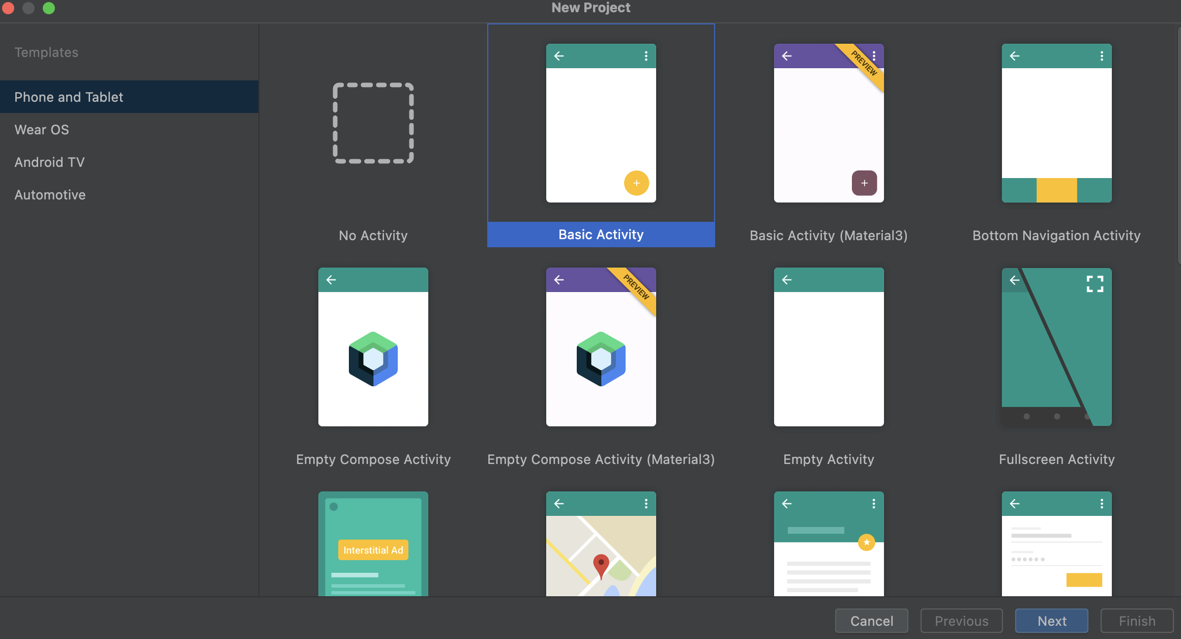 • Create a New Android project with Basic Activity.