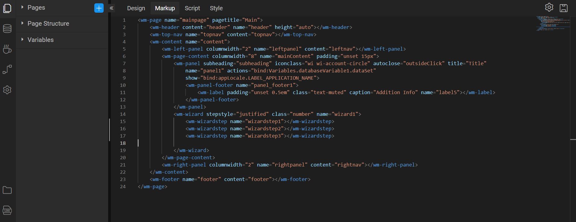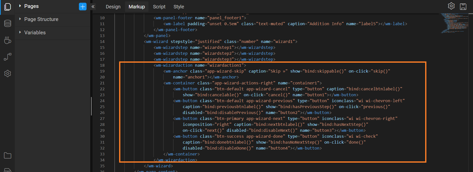 With this enhancement, wm-wizardaction is now added in the Wizard's Markup section.
